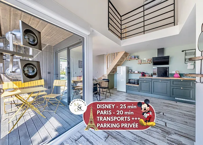 Das 1-Zimmer-Apartment L'Escapade - PARIS 20 min - DISNEY 25 min - GARE 3 min à pied - PARKING - Confortable&Moderne - Free WIFI Pomponne liegt in der Nähe von verschiedenen Attraktionen der Stadt: Le Room befindet sich unter anderem rund 5 Minuten zu Fuß von hier entfernt. Diese 42 m² großen Apartments verfügt über eine Terrasse mit Blick auf die Stadt.